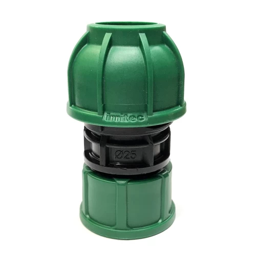Муфта для труб ПНД 25 x 1″ ВР с накидной гайкой IG42520D0N32C (Irritec) для монтажа водопровода и систем полива сада и огорода. Накидная гайка (американка) позволяет быстро и легко монтировать узлы водопровода или систем автоматического полива.