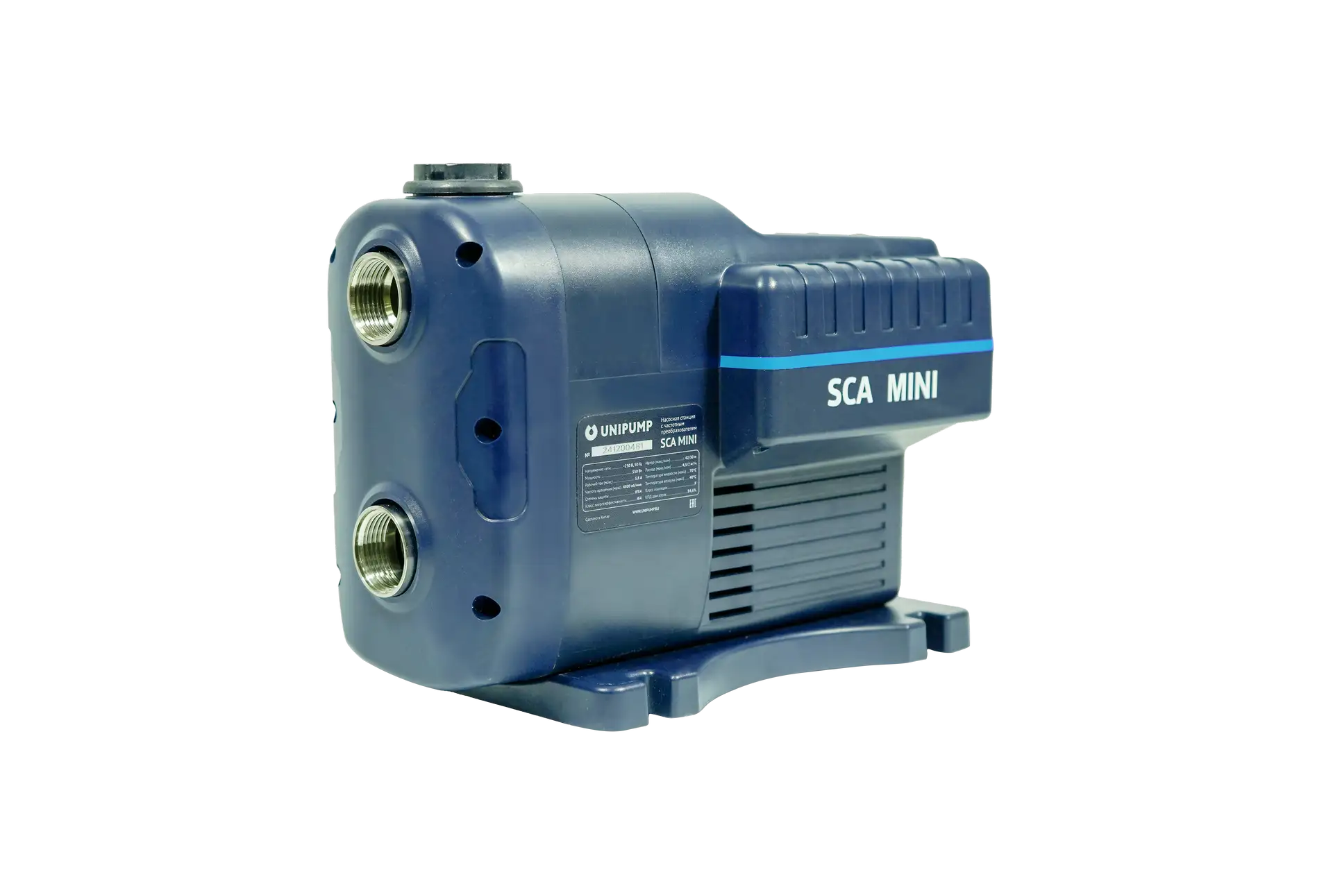 Насосная станция SCA MINI — это компактное устройство, объединяющее в себе горизонтальный многоступенчатый центробежный насос с энергоэффективным двигателем на постоянных магнитах, частотный преобразователь, датчик давления и гидроаккумулятор. Частотный преобразователь регулирует работу насоса, поддерживая постоянное давление в системе водоснабжения, что позволяет равномерно распределять воду при одновременном использовании нескольких точек потребления.