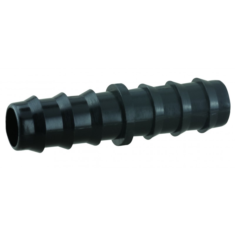Соединительный ниппель представляет из себя пластиковую деталь со специальными рисками для лучшей фиксации капельной ленты или шланга. Соединитель полностью выполнена из пластика, он имеет легкий вес и может устанавливаться как на новых лентах, при прокладке оросительных систем, так и при ремонте уже существующих систем при разрыв капельной ленты или шланга.