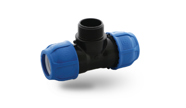 Тройник с наружной резьбой d 63х2″х63 нр, для водопроводных полиэтиленовых труб. Главное преимущество такого соединения — возможность быстрого монтажа и демонтажа, без использования сварки. Компрессионные фитинги для ПЭ труб могут быть использованным многократно. Они хорошо выдерживают воздействие внешних сред, совершенно не подвержены коррозии. Их можно использовать для систем разного типа и назначения. Соединения, сделанные с помощью таких фитингов, герметичны. Абсолютно безопасны и хорошо подходят для устройства систем подачи питьевой воды. Компрессионные фитинги являют собой разъемные соединения, использующиеся в процессе сборки трубопроводов холодного водоснабжения. Компрессионные фитинги могут быть использованы при обустройстве водопроводов из полиэтиленовых труб.