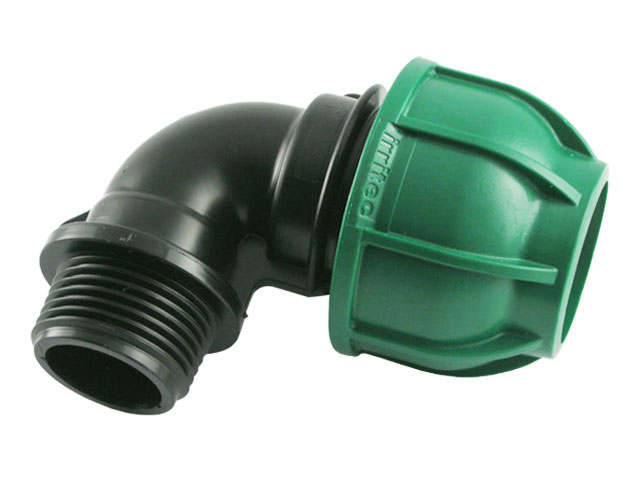 Отвод компрессионный с наружной трубной резьбой предназначен для возможности легкого перехода со стального трубопровода на трубопровод из ПНД труб под прямым углом.